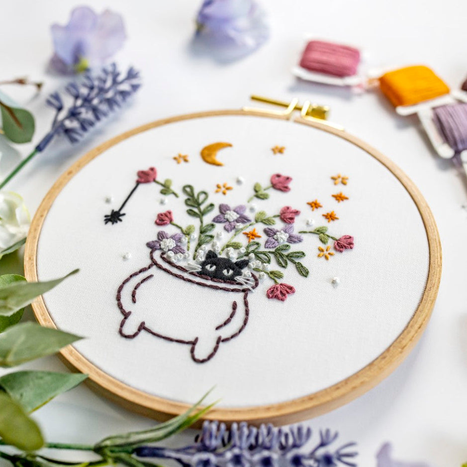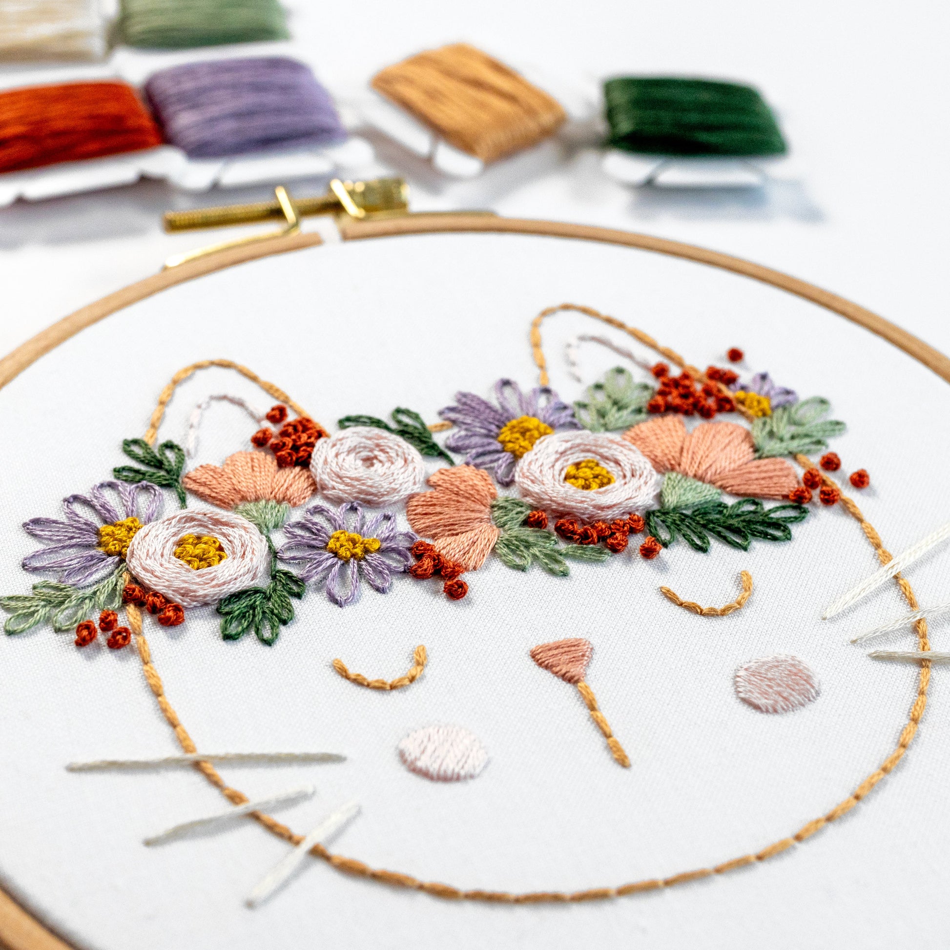 - Three cat-themed beginner embroidery kits with all the supplies you need to get started with learning embroidery