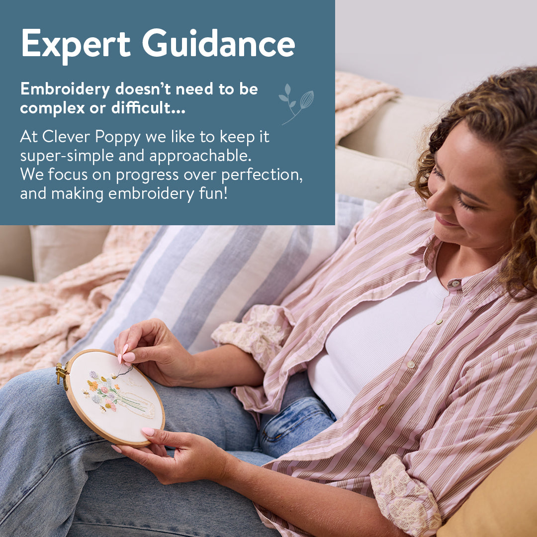 Perfect for beginners, this kit teaches you how to embroider directly onto a premium 100% cotton kitchen towel, creating something both beautiful and practical. It is a relaxing, confidence-building project that results in a handmade piece you will proudly display or gift.