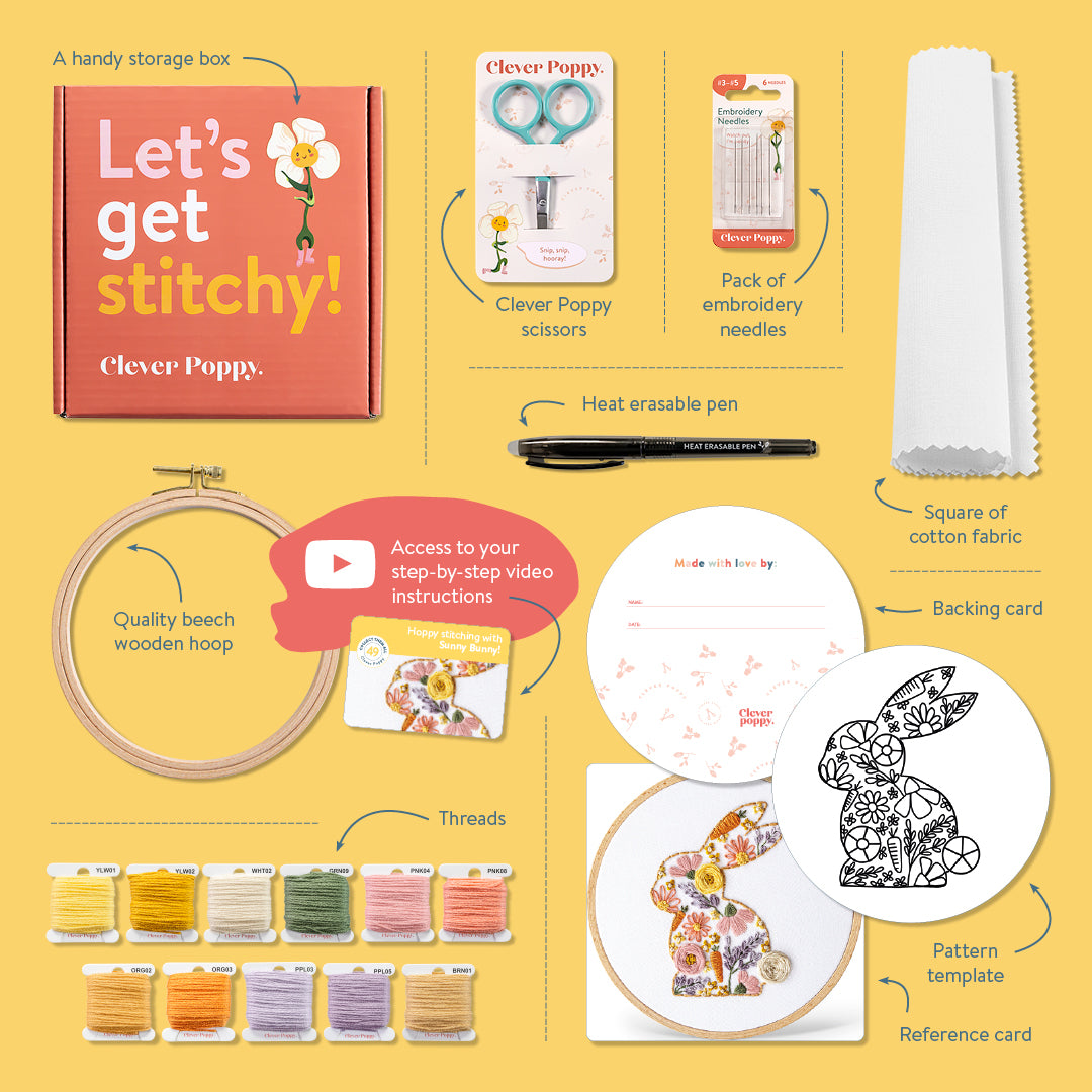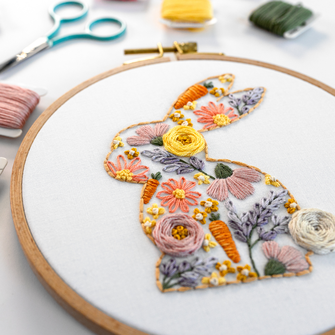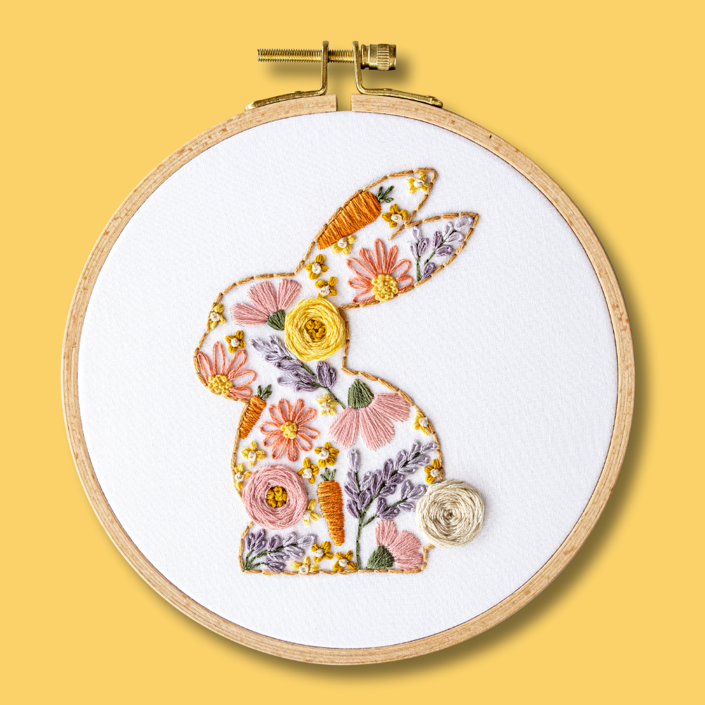 In this pattern you will practice beginner embroidery stitches such as lazy daisy, French knots, and woven rose. You're going to have so much fun stitching this one up, so hop to it!